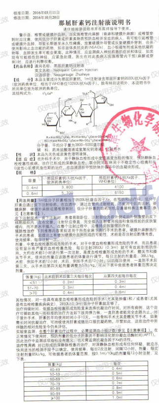 通過血管內(nèi)注射給藥。不能用于肌肉注射,脊髓麻醉,硬膜外麻醉或腰椎穿刺時(shí),低分子肝素的給藥時(shí)機(jī)應(yīng)遵循特殊注意事項(xiàng)